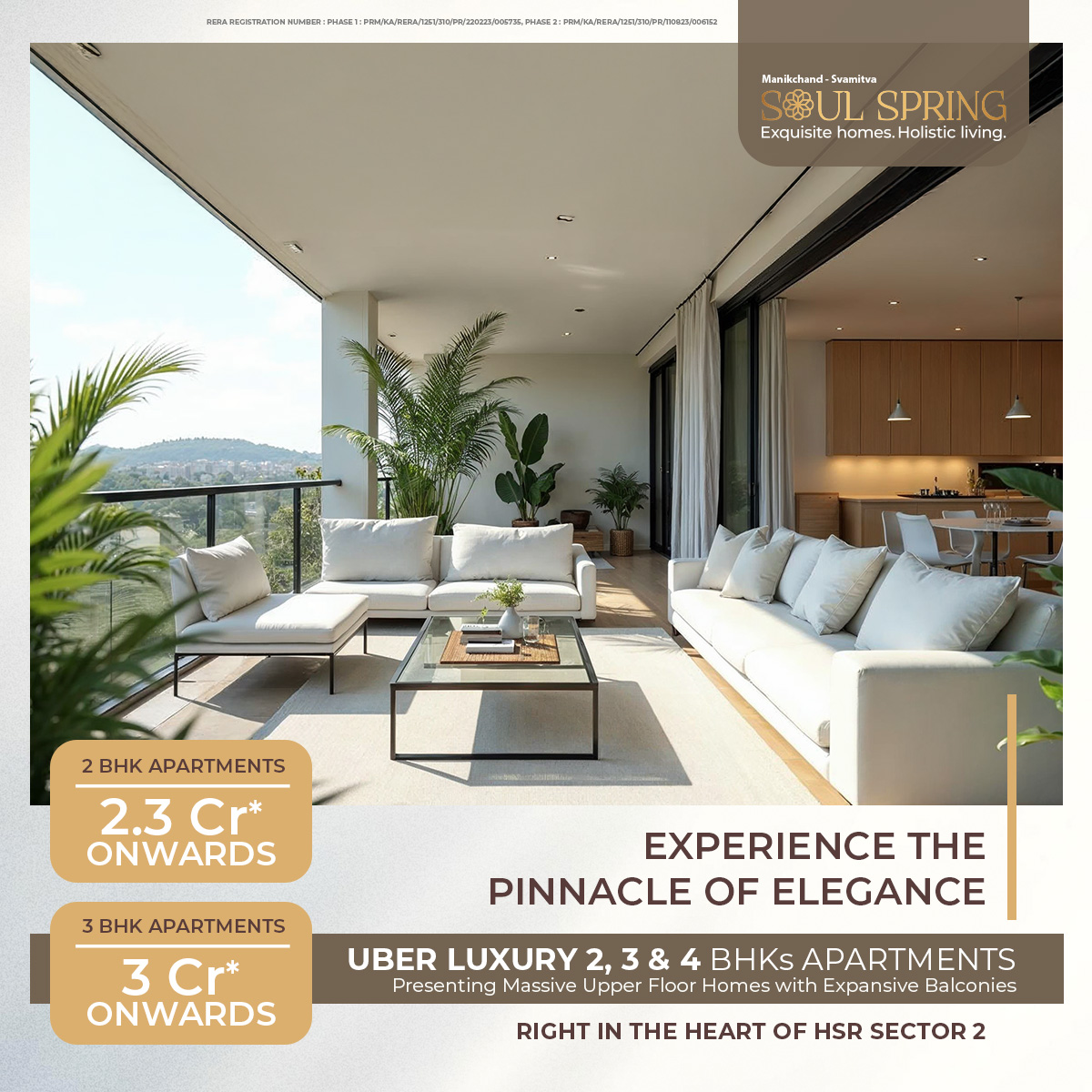 xperience grand living with the expansive homes at Svamitva Soulspring. Thoughtfully designed, these apartments combine modern layouts with elegant interiors, offering unmatched comfort and luxury for discerning homeowners in HSR Layout.
